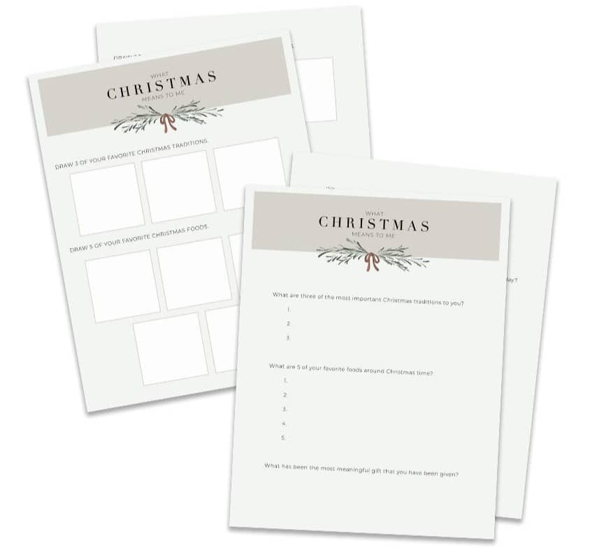 This printable will help guide your conversation. Find out what Christmas smells like and tastes like to them! Find out what their favorite tradition is. You might be surprised by their simple answers, and you will be delighted by the ways you can simplify this season. Happy holidays! |