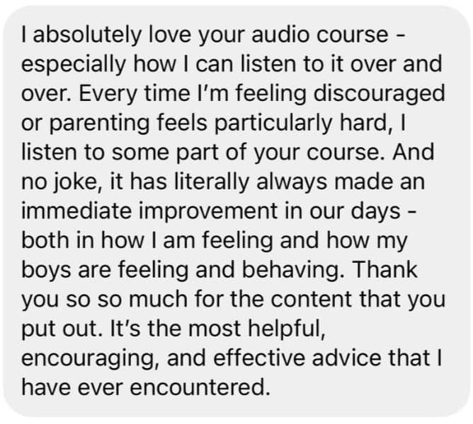 What we pay attention to and the words that we speak are so powerful. My audio course will teach you how to look at the behavior as a symptom, and not a characteristic so that you can respond in a way that improves behavior in the future. Backed by research and brain science, learn just how simple it is to change the behaviors in your home and make life a whole lot more enjoyable. PS - Still on the fence? Listen to the intro for FREE. (Scroll down to the Intro and click "preview") |