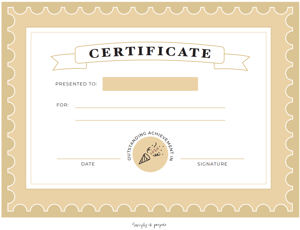 | Hi friend! As we near the end of 2024, I want to help you celebrate your amazing child! We've made several colors of blank certificates that you can present to your child in celebration of their growth in 2024. Some examples of what to award the certificates for: